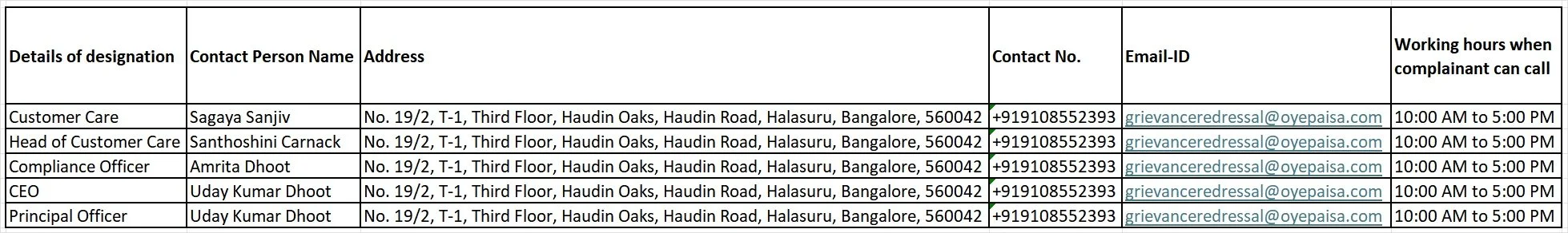 In case of any grievance / complaints - Please write to our Compliance Officer - Amrita Dhoot - grievanceredressal{@}oyepaisa.com